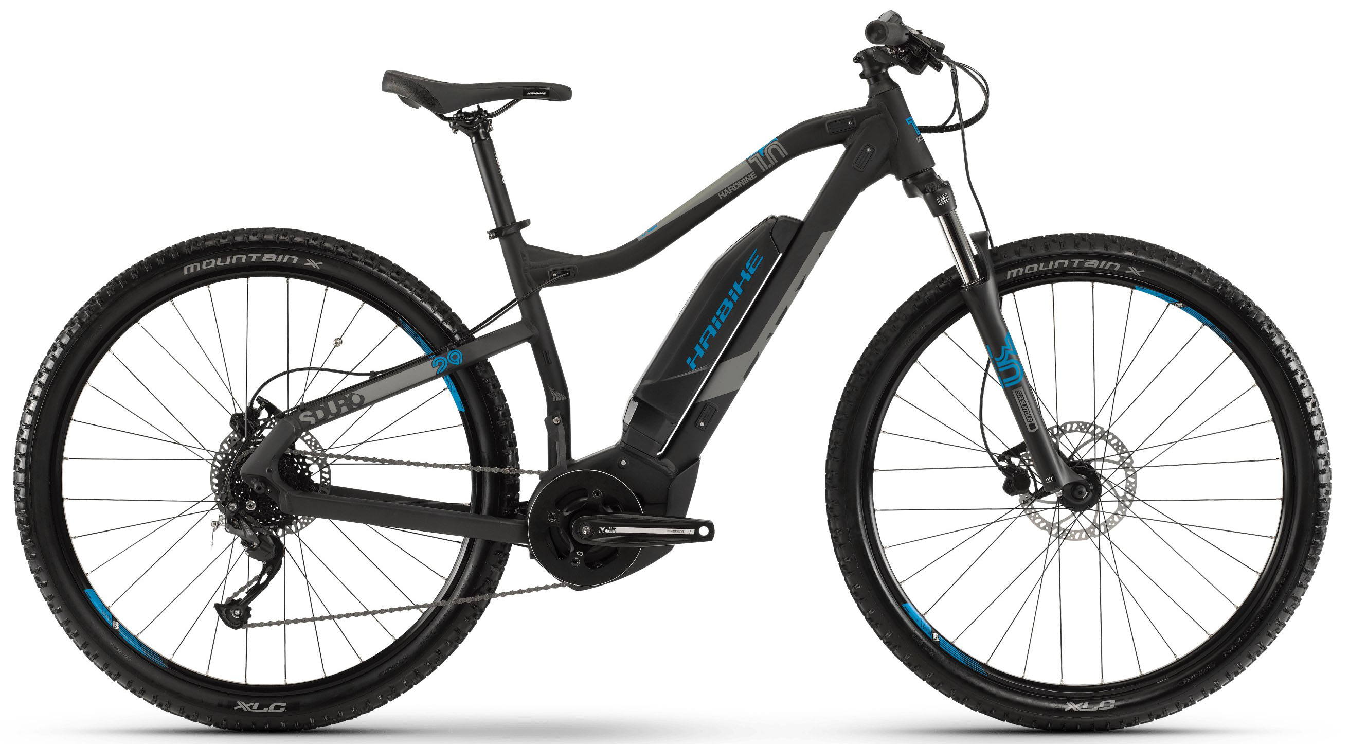 ХарактеристикиБренд HAIBIKE Модель SDURO HardNine 1.0 400Wh 9-G Altus Тип рамы хардтейл Год 2019 Амортизатор без амортизатора Материал рамы Алюминий (Alloy) Рама/описание aluminium 6061, HD Interface, quick-release 5 x 135mm, disc brake Post Mount Тип вилки Амортизационная (пружина) Ход вилки, мм от 100 до 150 мм Блокировка амортизатора Да Вилка/регулировки SR Suntour XCM DS, steel spring, Travel: 100mm, steel steerer tube 1 18, quick release Диаметр колес 29" Спицы Sapim Leader, black Обода Rodi Black Rock 21, with eylets, hollow rim, aluminium Резина XLC MountainX, 57-622, 29 x 2.25 / XLC MountainX, 57-622, 29 x 2.25 Тормоза Дисковые гидравлические Грипсы Haibike MTB grips Тормоз Tektro M275, 180mm, 2-piston disc brake / Tektro M275, 180mm, 2-piston disc brake Тормозные ручки Tektro M275, aluminium Уровень оборудования Любительский Шифтеры Shimano Altus M2000, rapidfire Переключатель задний Shimano Altus M2000, 9 speed Кассета Shimano HG200, 11-36 teeth Цепь KMC X9 Шатуны 38, steel Количество скоростей 9 Руль Haibike Components TheBar Plus Topflat 720mm Рулевая колонка A-Head Tapered, ball bearing Вынос Haibike Components TheStem Plus, A-head, Bar bore: 31.8mm, 7 Седло Haibike Components TheSaddle Подседельный штырь Haibike Components The Seatpost Plus, patent, 31.6mm, aluminium Педали MTB platform pedal, aluminium Втулка передняя Haibike Components TheHub Plus Пол/возраст Мужской Вес 22.5 Втулка задняя Haibike Components TheHub Plus