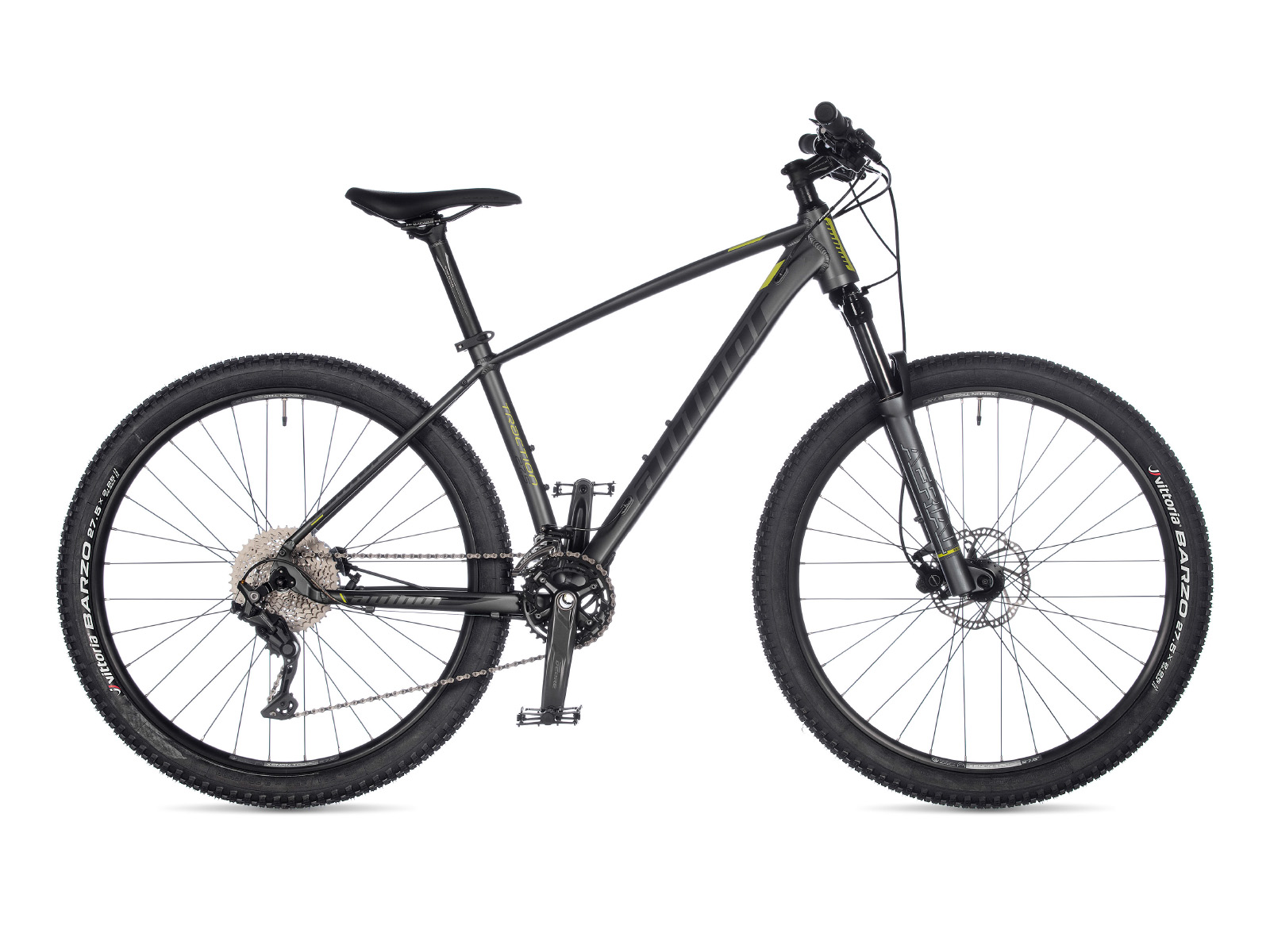 Велосипед AUTHOR TRACTION (2021) — модель с продуманной конструкцией рамы. Отлично держит дорогу как при движении по прямой, так и при совершении маневров. Дисковые гидравлические тормоза повышенной надёжности и колеса дюймов являются залогом не только безопасного, но и комфортного движения по любому рельефу. Дополняют картину лёгкий разгон и отличные скоростные характеристики. Горные велосипеды с колёсами 27,5 (новый стандарт), помимо отличных технических характеристик, имеют стильный дизайн, что очень важно для любого современного райдера. Модель 2021 года выглядит оригинально и стильно. Она может быть отправлена в любую точку России.ХарактеристикиБренд AUTHOR Модель TRACTION Год 2021 Материал рамы Алюминий (Alloy) Рама/описание double butted hydroformed alloy 6061 27.5" Тип вилки Амортизационная (воздух) Вилка/регулировки RST Aerial 27.5 15 TRL air, remote lock out (100 mm) Спицы black stainless steel 2.0 mm Обода AUTHOR Xenon TRC 27.5 32 holes Резина VITTORIA Barzo foldable 27.5" × 2.25" Тормоза Дисковые гидравлические Грипсы AUTHOR Pro Lock Тормоз TEKTRO Gemini disc hydraulic (6" rotors) Тормозные ручки TEKTRO Gemini Уровень оборудования Продвинутый Шифтеры SHIMANO Deore (20) Переключатель передний SHIMANO Deore (34.9) Переключатель задний SHIMANO Deore Цепь KMC X10 Каретка SHIMANO BB-52 BB unit Шатуны SHIMANO M4100-2 36-26 teeth 170 / 175 mm cranks Количество скоростей 20 Руль AUTHOR 9° 680 / 700 mm Рулевая колонка AUTHOR Integrated 1.5" tapered Вынос AUTHOR alloy Седло AUTHOR Navigator Подседельный штырь AUTHOR alloy (31.6) Педали AUTHOR alloy Втулка передняя AUTHOR Radon 32 holes Вес 12,8 kg / 17" Втулка задняя AUTHOR Radon 32 holes