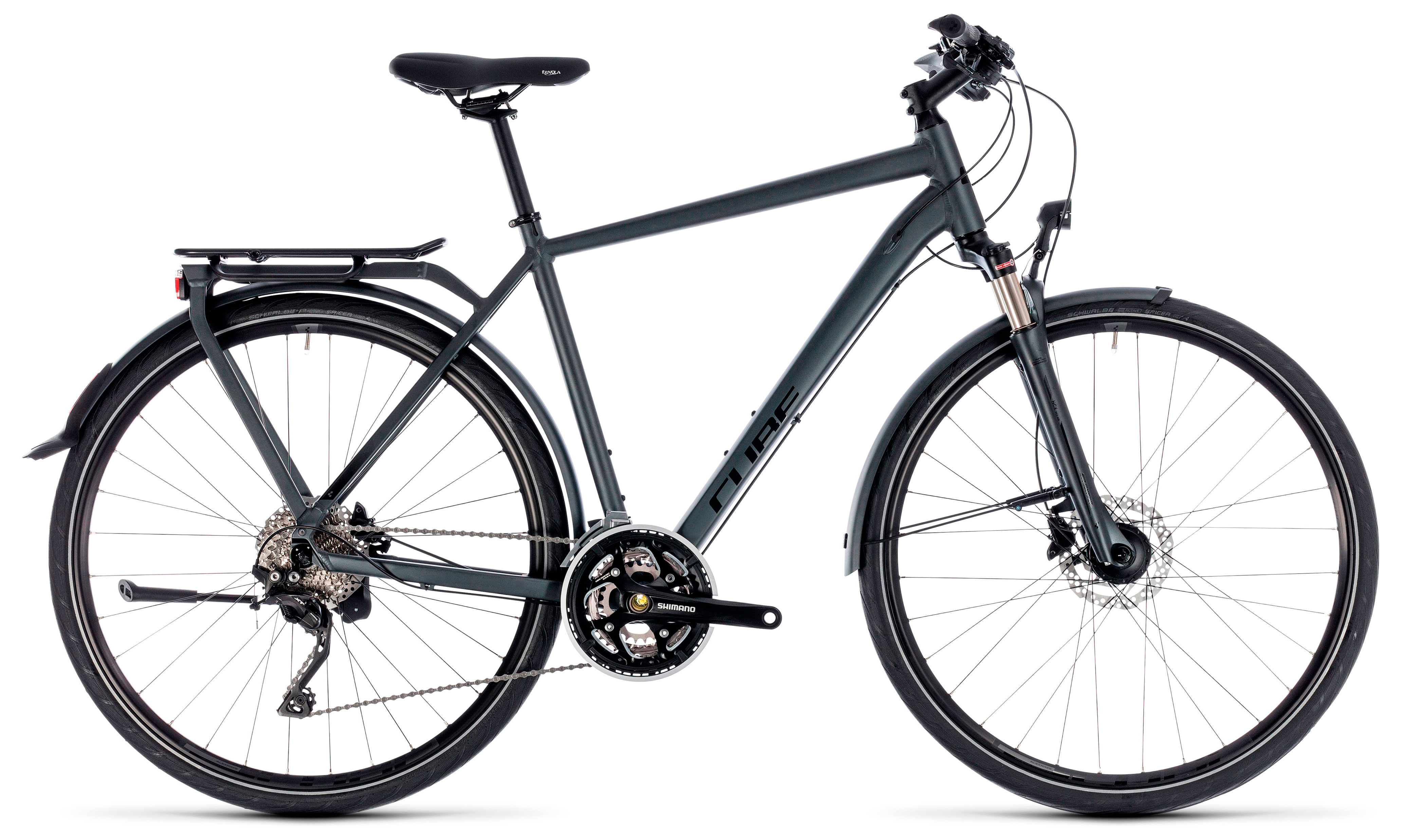 Бренд CUBE Модель Kathmandu PRO Год 2018 Серия Kathmandu Материал рамы Алюминий (Alloy) Рама/описание Aluminium Superlite Trekking Comfort IC 2.0 Double Butted Тип вилки Амортизационная (воздух) Ход вилки, мм до 100 мм Блокировка амортизатора Да Вилка/регулировки SR Suntour NCX D LO Air, 63mm Диаметр колес 28" Обода Cube SX20, 32H, Disc Резина Schwalbe Spicer, Active, 40x622 / Schwalbe Spicer, Active, 40x622 Тормоза Дисковые гидравлические Грипсы Cube Natural Fit Comfort Тормоз Shimano BR-M315, Hydr. Disc Brake (160) / Shimano BR-M315, Hydr. Disc Brake (160) Уровень оборудования Профессиональный Шифтеры Shimano Deore SL-M6000, Rapidfire-Plus Переключатель передний Shimano Deore FD-T6000, Top-Swing, 31.8mm Переключатель задний Shimano XT RD-T8000, 10-Speed Кассета Shimano CS-HG500, 11-34T Цепь KMC X10 Каретка Integrated BB Шатуны Shimano FC-T551, Hollowtech II, 48x36x26T, 175mm Количество скоростей 30 Руль Cube Rise Trail Bar, 680mm Рулевая колонка FSA No.10, Semi-Integrated Вынос Cube Performance Stem Pro, 31.8mm Седло Selle Royal Nuvola Подседельный штырь Cube Performance Post, 27.2mm Педали Trekking Gummiert Втулка передняя Shimano DH-3D37, Hub Dynamo, QR, Centerlock Пол/возраст Мужской Вес 15,2 кг Втулка задняя Shimano Deore FH-M6000, QR, Centerlock -