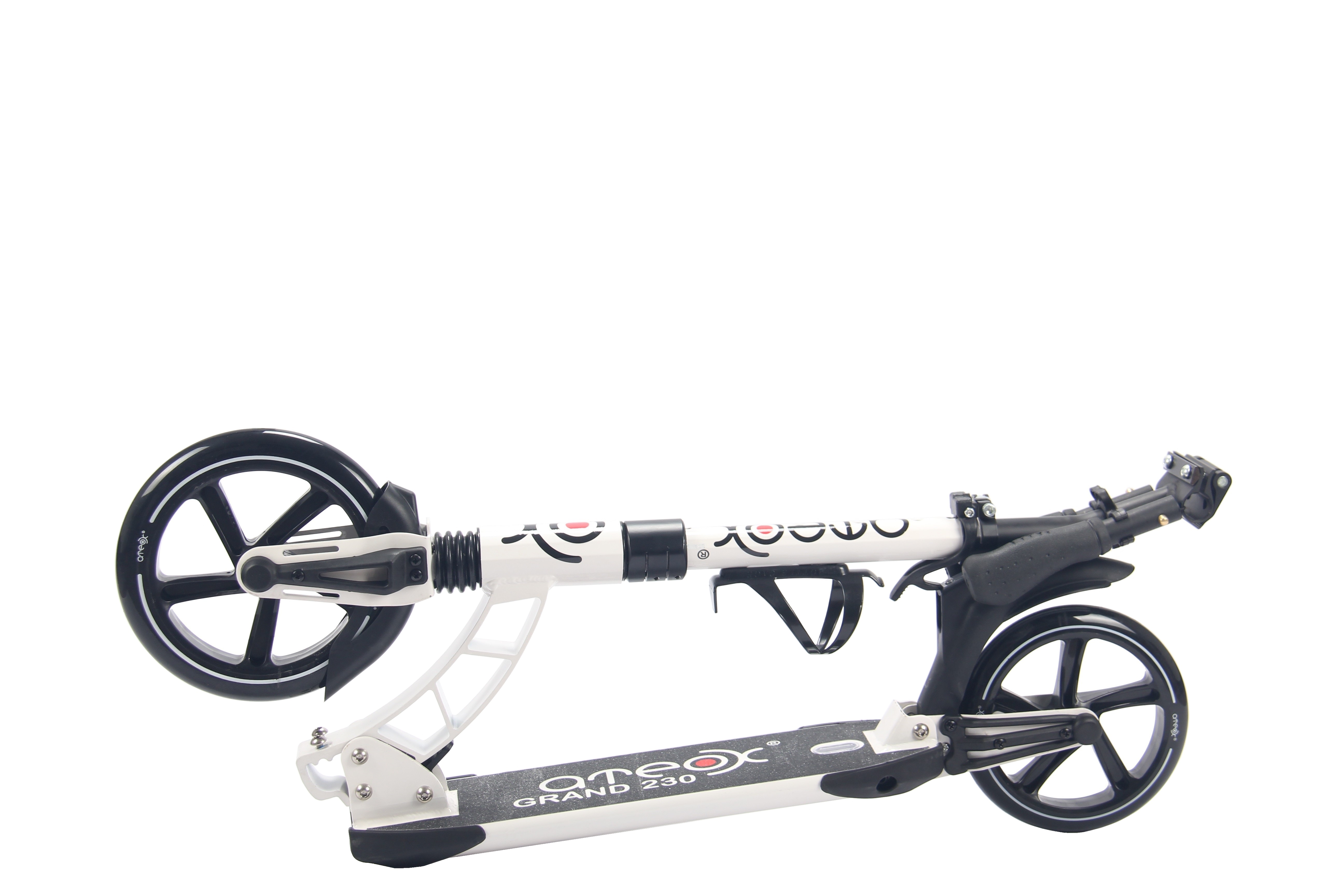 Самокат АTEOX GRAND 230 придется по вкусу тем, кто ценит комфорт и красоту. Необычный, но при этом сдержанный дизайн будет радовать глаз, а большая, самая длинная в линейке АTEOX, дека позволит чувствовать себя уверенно даже не очень опытному райдеру. В нем есть все - от невероятно легкой и надежной системы складывания, до фиксатора рукояток руля. Надежные, с прекрасным накатом (благодаря подшипникам поколения ABEC 7 Chrome) полиуретановые колеса держат сцепление с поверхностью дороги просто идеально. Мы уверены, что самокат категории 8+ АTEOX GRAND 230 завоюет ваши сердца!ХарактеристикиБренд ATEOX Модель Самокат ДЛЯ ВЗРОСЛЫХ АTEOX GRAND 230 (БЕЛЫЙ), ЦВЕТ БЕЛЫЙ Амортизатор Передний и задний (регулируемый) Высота руля от 85 до 105 см Диаметр колес 230/200 Грипсы резина Максимальная нагрузка 100 кг Тормоз задний наступающий (step-on brake) Клиренс 8 см Пол/возраст от 8 лет Ширина руля 38 см Вес 6,3 кг Подшипник ABEC 7 Chrome Гарантийный срок 12 месяцев Противоскользящее покрытие да Подножка нет Ремень для переноски да Габариты коробки (ДхВхШ) 0,93 м х 0,38 м х 0,15 м Дека алюминиевая (13 см х 49 см) Вес самоката в коробке 7,3 кг Система складывания нажатие носком стопы Флягодержатель да Колёса полиуретановые